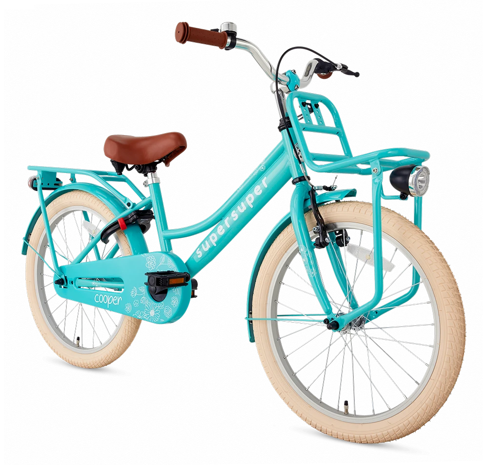 Den perfekte cykel for en skolepige! Elegant retro design og skøn turkis farve! Cykel er med robust bagagebærer samt frontlad, hvor man kan have sin skoletaske, gymnastikpose mm. på. Man kan også montere en cykelkurv, hvilket kan være mere praktisk.