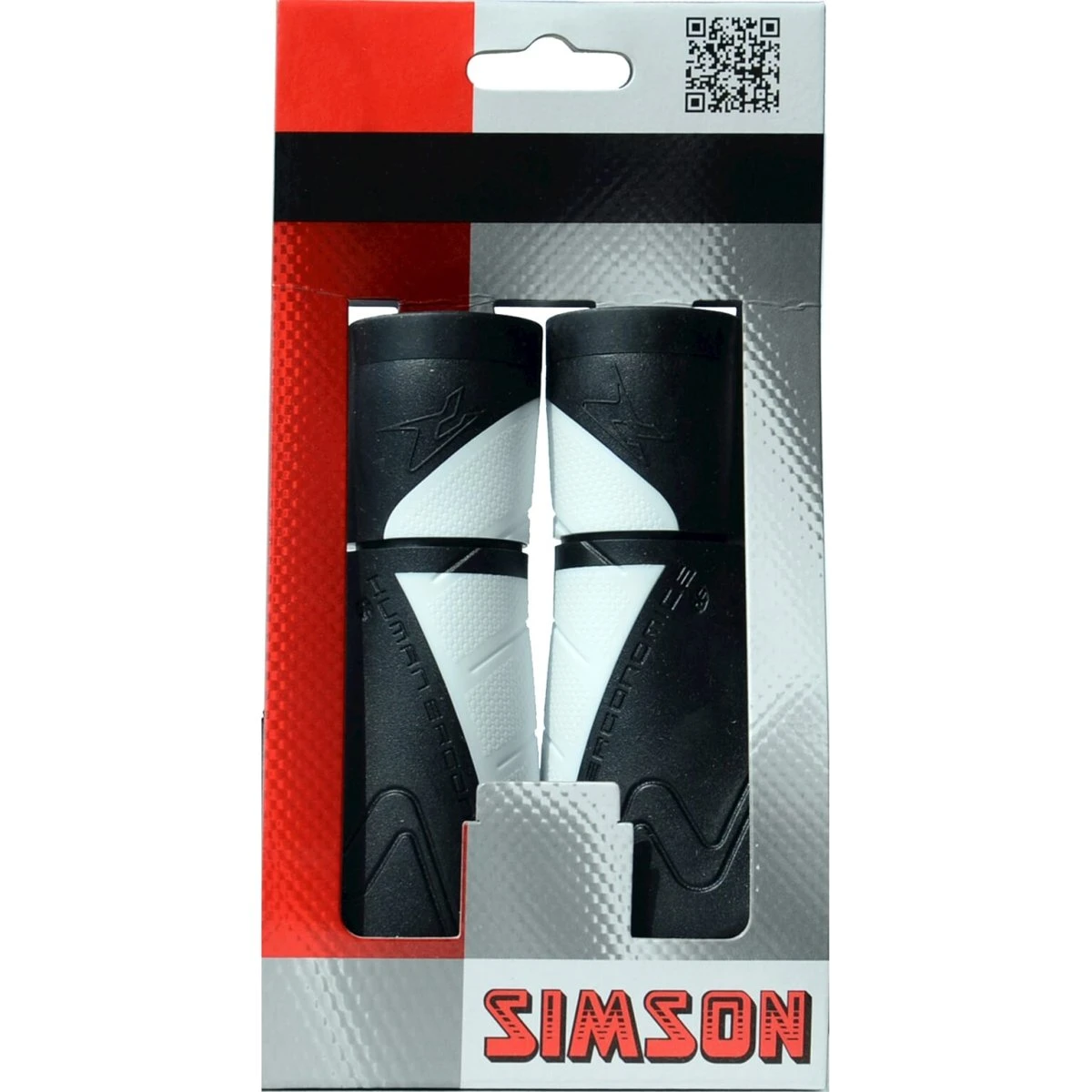 Simson håndterer ergonomi sort og hvid er designet i ergonomisk padleform til optimal trykfordeling og ekstra støtte. Håndtagene er egnede til næsten alle cykler med eller uden grebskiftudstyr. For cykler med et grebskift gear kan håndtagene forkortes til 92 mm ved at skære dem til størrelse på skærelinjen. Fjern det gamle håndtag, og skub Simson -håndtaget på det ønskede sted.