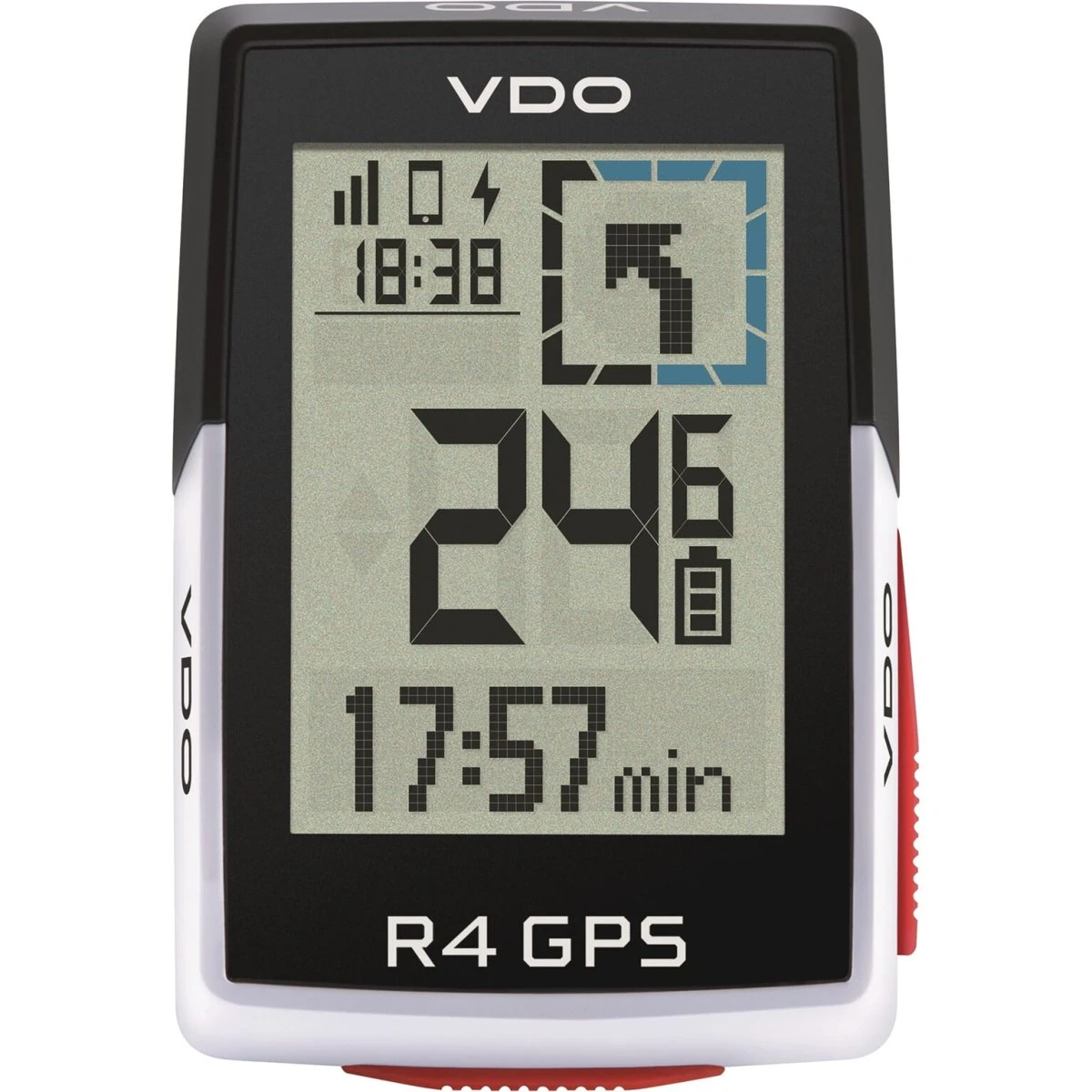 R4 er GPS -cykelcomputeren har en stor skærm, er brugervenlig og tilbyder 17 funktioner. Alle vigtige grundlæggende data, såsom hastighed og rideafstand, måles via GPS, sensorer og kabler er derfor unødvendige. Denne computer adskiller sig også gennem praktisk spornavigation og søgning & gå navigation med turn-by-sving-instruktioner. En markant blå firkant i øverste højre hjørne af skærmen gør en ny måde muligt at vise træningsdata eller drejning-for-sving-instruktioner. Hvis du er færdig med din træning, kan du hurtigt uploade dataene til Strava og Komoot (automatisk). Sammen med den kompatible Sigma-VVDO Ride-app kan du også indstille dine træningsskærme individuelt eller vise smarte meddelelser. Derudover kan det knyttes til kompatible e-cykler. VDO R4 GPS leveres med en over Clamp Butler, der placerer GPS -computeren på det centrale rattet lige over stilken. Denne indehaver passer ind med styring med en diameter på 31,8 til 35,0 mm.